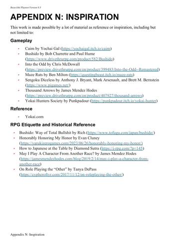 While this supplement is inspired by Japanese mythology and feudal society, it is by no means meant to be a historically accurate text. Citing this in an academic setting will more than likely result in a terrible outcome, but if you want to play Samurai and hunt Yokai in Cairn then you’re in the right place.